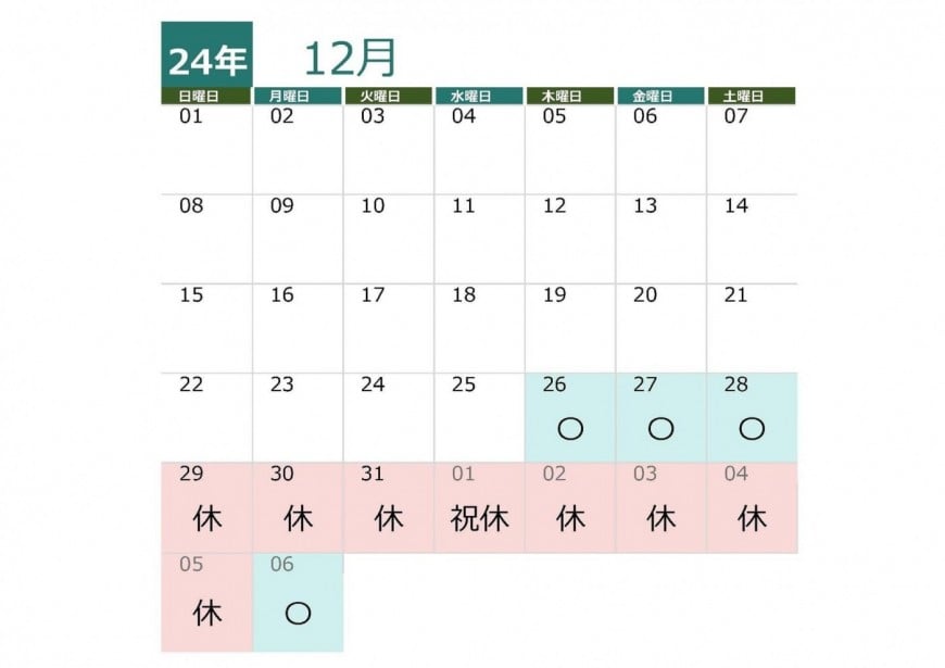 休業期間: 2024年12月29日(日)~2025年1月5日(日)