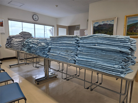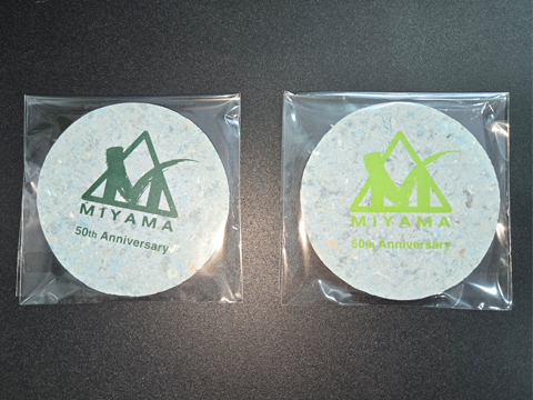 この度は50周年記念としてユニフォームをリニューアルをいたしました。 リニューアルするにあたり、以前着用していたユニフォームを回収して(重さ150kg弱)記念としてコースターへとリサイクルいたしました。