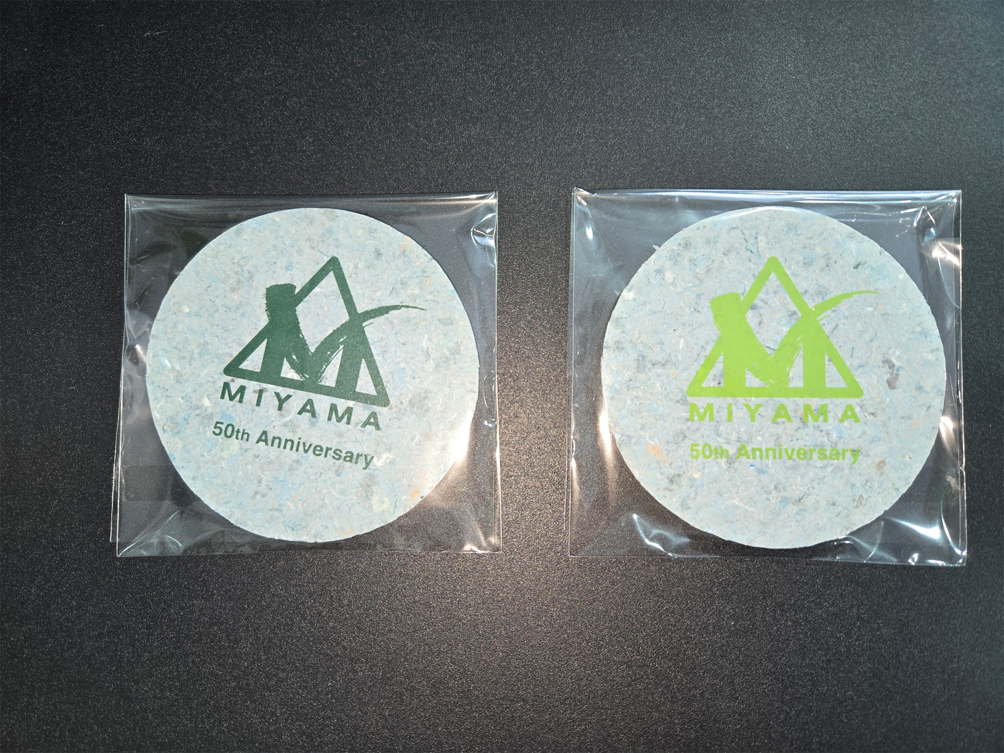 一覧へ戻る 50周年記念コースター2024-12-26 この度は50周年記念としてユニフォームをリニューアルをいたしました。 リニューアルするにあたり、以前着用していたユニフォームを回収して(重さ150kg弱)記念としてコースターへとリサイクルいたしました。
